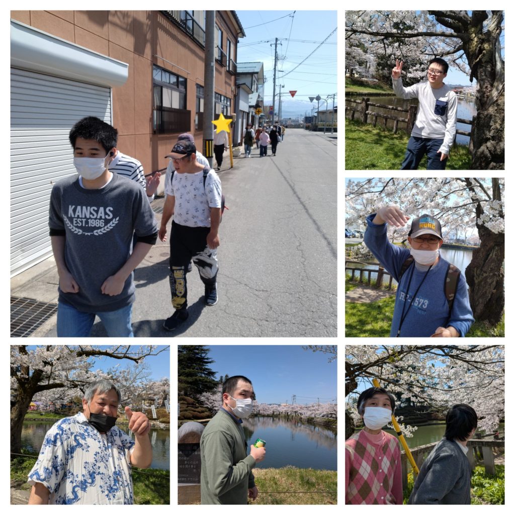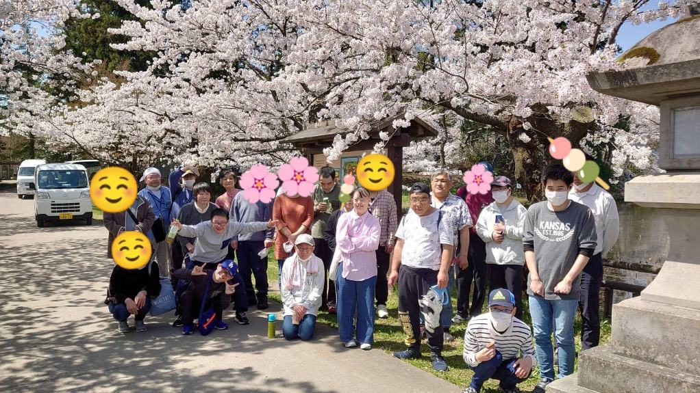 4/22(火)お花見を行いました。上杉公園まで散歩をしながら、満開の桜を楽しむことができました。連日雨が続き、いつ開花するのかと楽しみにされていました🤗皆さんほんのひと時でしたが、気分転換出来たようです🎶
